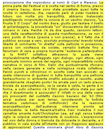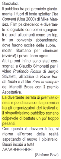 Una mortificante tendenza che si ripeterà soprattutto nei tempi a venire e che sfiorerà vette di desolazione in un topic ospitato nel forum Nocturno Cinema, dal titolo Fantafestival a Roma (vedi più in là).