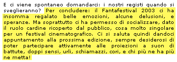 Dall’universo ipertestuale un flebile appello - Fantafestival 2004...salviamolo!!! - si era acceso come una folgore da uno spartano forum di proprietà del sito Horrorcult (smantellato e irreperibile da diverso tempo).