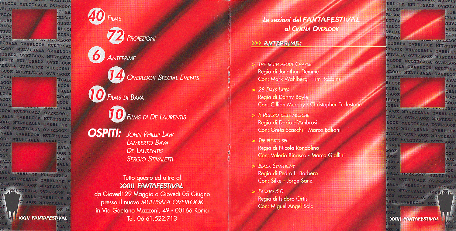 Gran parte della programmazione viene commissionata al multisala Overlook, lodevole impianto istituito in periferia, alla strenua ricerca di una leadership come unica realtà nostrana interamente dedicata all’Horror. Ma l’anno successivo il cinema abbasserà per sempre le serrande.
