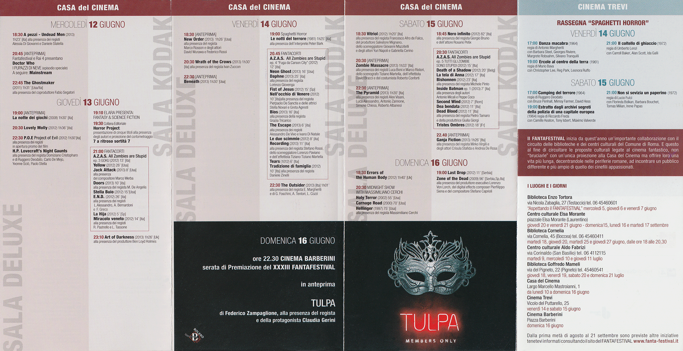 Con l’arrivo delle giornate calde, una legione di gente insospettabile era pronta ad eseguire il solito contorto cerimoniale: scoprire del tutto casualmente luogo e date della nuova edizione del Fantafestival e dirigersi la sera prima, o addirittura il giorno stesso, a ritirare i pieghevoli informativi con la programmazione dei film.